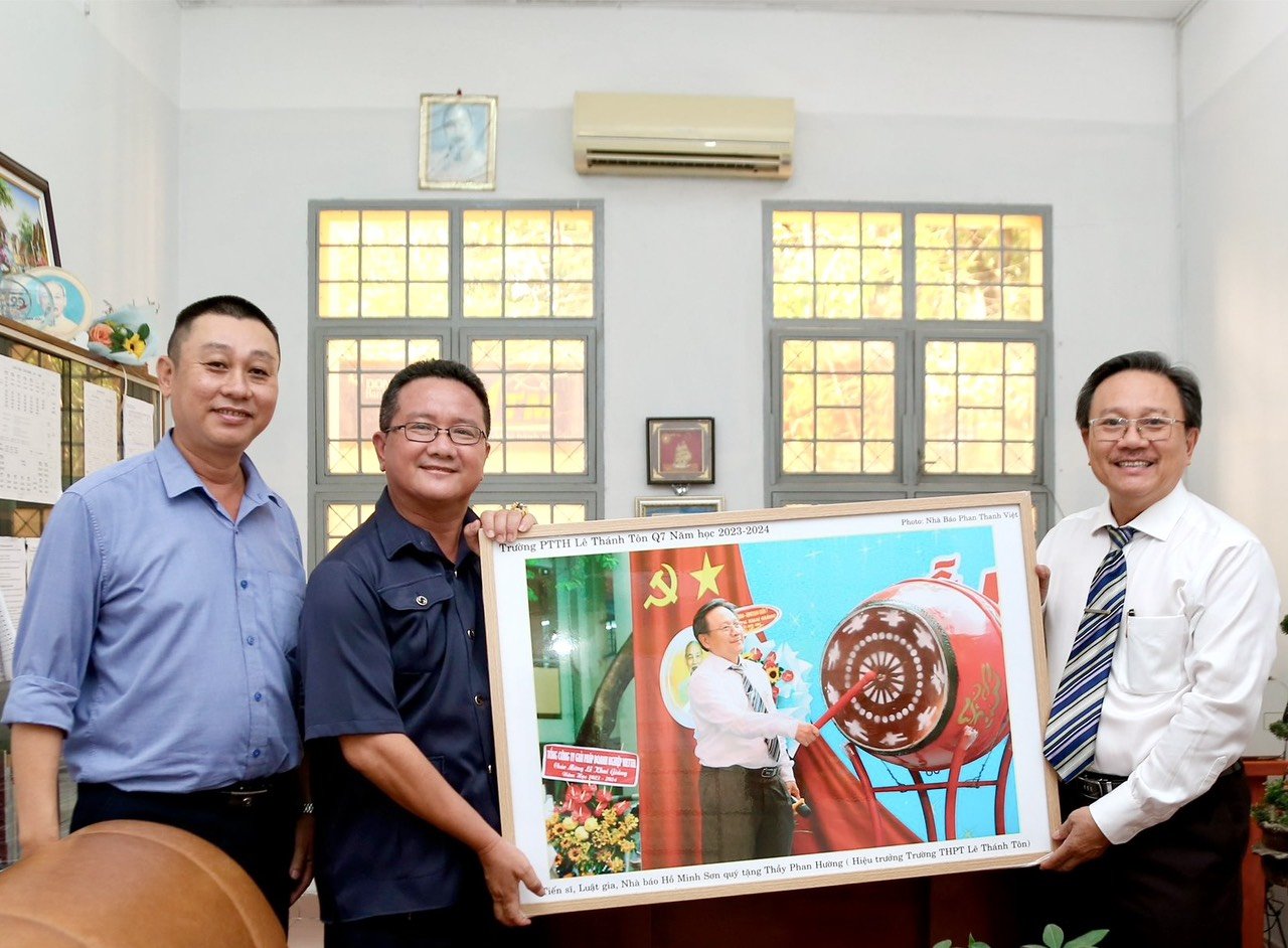 Tiến sĩ Hồ Minh Sơn tặng ảnh chân dung cho thầy Phan Hường
