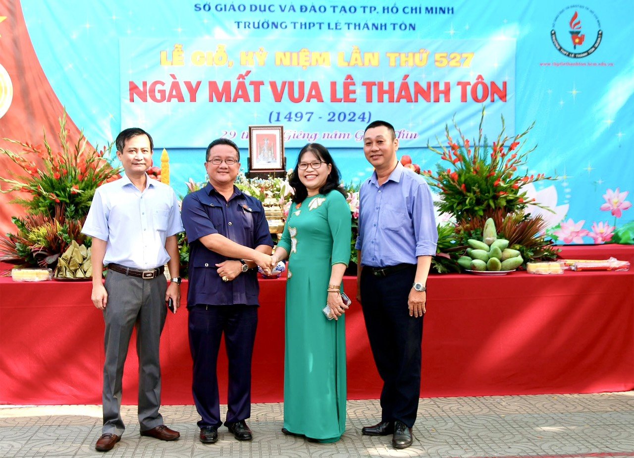 Cụ thể, sáng ngày 09/03/2024 (tức ngày 29 tháng Giêng), tại Trường THPT Lê Thánh Tôn, quận 7, TP. Hồ Chí Minh, tổ chức trọng thể Lễ giỗ vua Lê Thánh Tôn lần thứ 527 (1497-2024), ngày giỗ vua Lê Thánh Tôn hằng năm cũng là ngày truyền thống của nhà trường…