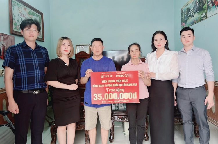 ThS. Mai Thanh Hải; Bà Nguyễn Thị Huyền và ông Trần Thành Vĩnh (Phó Chánh Văn phòng Viện IMRIC); Bà Trần Thị Liên – Phó Chánh Văn phòng Viện IRLIE, Chủ tịch lâm thời Câu lạc bộ Doanh nghiệp IMRIC – IRLIE đã đến thăm và trao 35.000.000VND từ vận động Cty Mays Ruviteks và bà Võ Thị Mận cùng những người bạn tại Liên bang Nga ủng hộ cho gia đình bà Nhung.