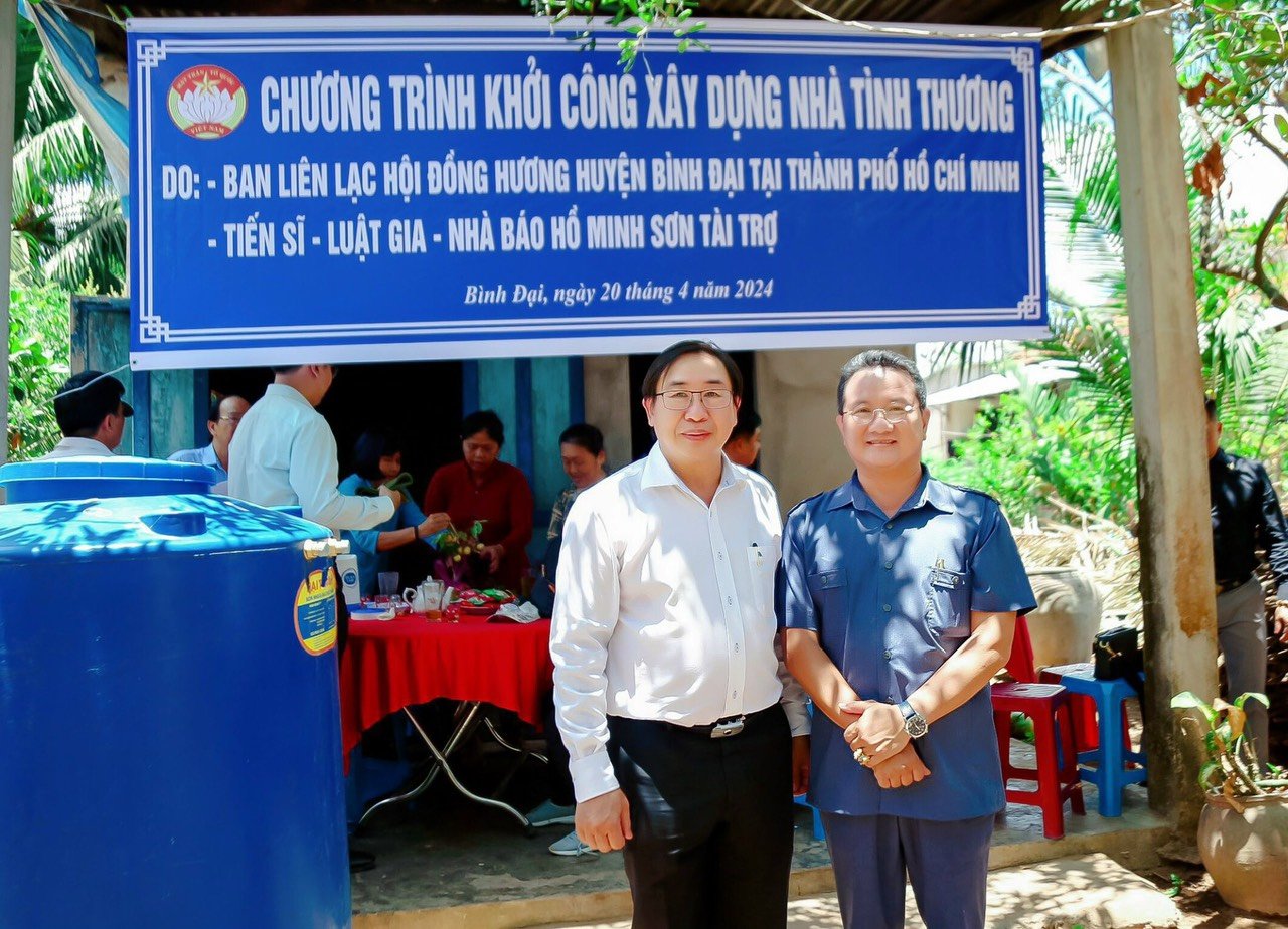 Phát biểu tại buổi lễ, TS Hồ Minh Sơn đã gửi lời cảm ơn đến các cấp lãnh đạo địa phương đã tạo điều kiện tốt nhất cho Viện IMRIC, Viện IRLIE, các doanh nghiệp thành viên thực hiện nghĩa cử cao đẹp này. Ông Sơn tin tưởng sự giúp đỡ có hiệu quả của các cấp lãnh đạo địa phương cùng với món quà nhỏ này của viện, gia đình được hỗ trợ về nhà ở nhất định sẽ vượt qua mọi khó khăn, xây dựng cuộc sống ngày càng tốt đẹp hơn…Trong dấu ấn thành công của viện IMRIC, Viện IRLIE nói chung không thể thiếu sự ủng hộ, giúp đỡ, phối hợp có hiệu quả của các cấp ủy đảng, chính quyền và cơ quan, ban ngành có liên quan, nhất là BLL Hội đồng hương huyện Bình Đại tại TP.HCM. Vì vậy, bên cạnh nhiệm vụ của mình, bên cạnh những giá trị cốt lõi trong văn hóa xúc tiến đầu tư, chiến lược truyền thông, xây dựng thương hiệu và tuyên truyền phổ biến giáo dục pháo luật là thực hiện tốt trách nhiệm xã hội thông qua công tác đền ơn đáp nghĩa, ủng hộ trao tặng nhà tình nghĩa cho các gia đình đồng bào có hoàn cảnh đặc biệt khó khăn.