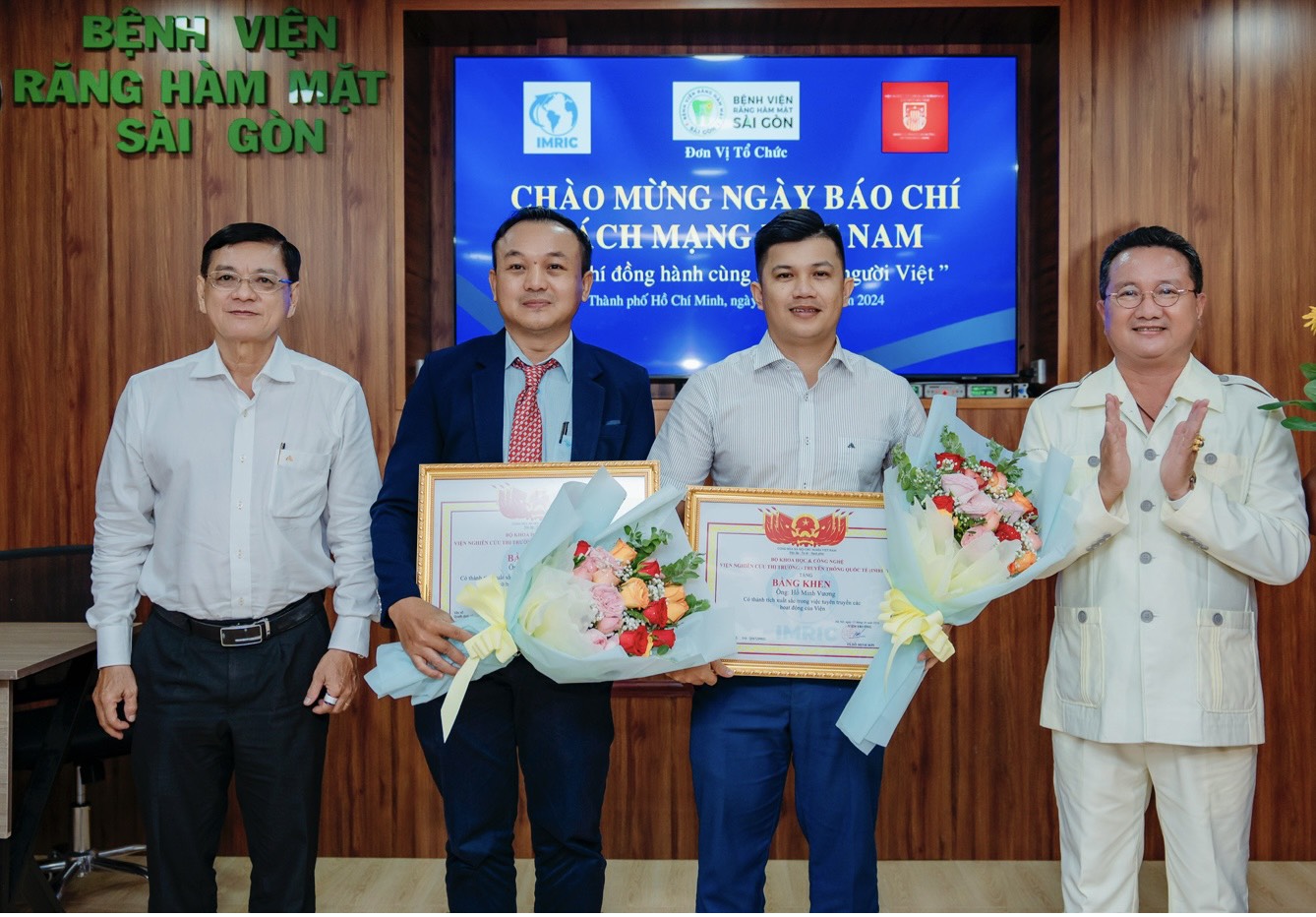 Nhân kỷ niệm 99 năm ngày Báo chí Cách mạng Việt Nam, Viện IMRIC và Viện IRLIE trao tặng bằng khen cho Tập thể, cá nhân Bệnh viện Răng Hàm Mặt Sài Gòn và các nhà báo, phóng viên đã đồng hành trong suốt thời gian qua.